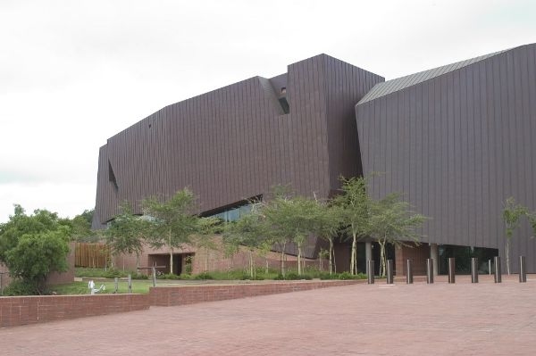 博物館的設(shè)計(jì)概念來(lái)自傳統(tǒng)治療師的“愈合”花園,這種花園在北開(kāi)普省庫(kù)魯曼的一個(gè)農(nóng)莊中可以見(jiàn)到。設(shè)計(jì)概念逐步演變,創(chuàng)造了大巨石一樣的體量,其中包含講故事空間。