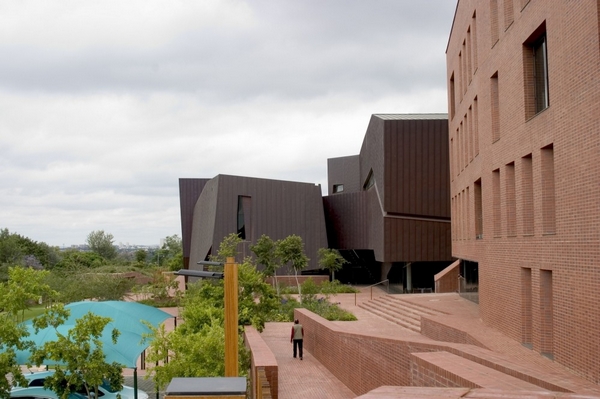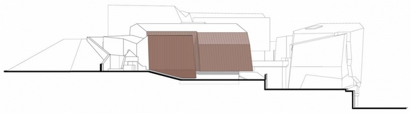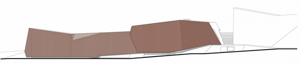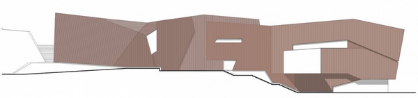 巨石設(shè)置在Salvokop山山腳,就像一塊露頭的巖石。建筑的墻體和屋頂都覆蓋了銅板,“露頭的巖石”將隨著時(shí)間的推移,逐漸銹蝕成綠色,與自然景觀(guān)融合在一起。