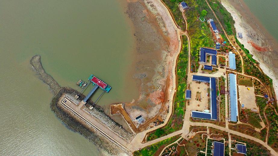 秦山島躉船碼頭鳥瞰,是登島主要碼頭,未來將于城市游客碼頭及連島游艇碼頭實(shí)現(xiàn)對(duì)接。