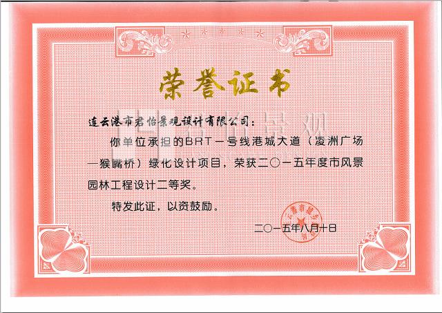 2015年獲獎證書