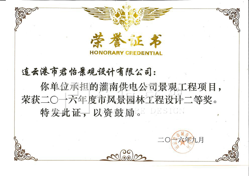 2016年獲獎(jiǎng)證書(shū)